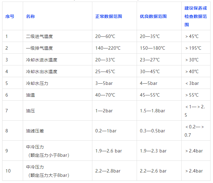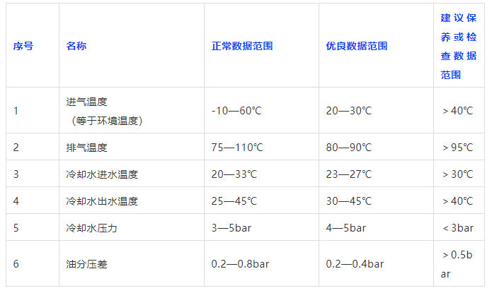 空壓機運行通用數(shù)據(jù)參考表
